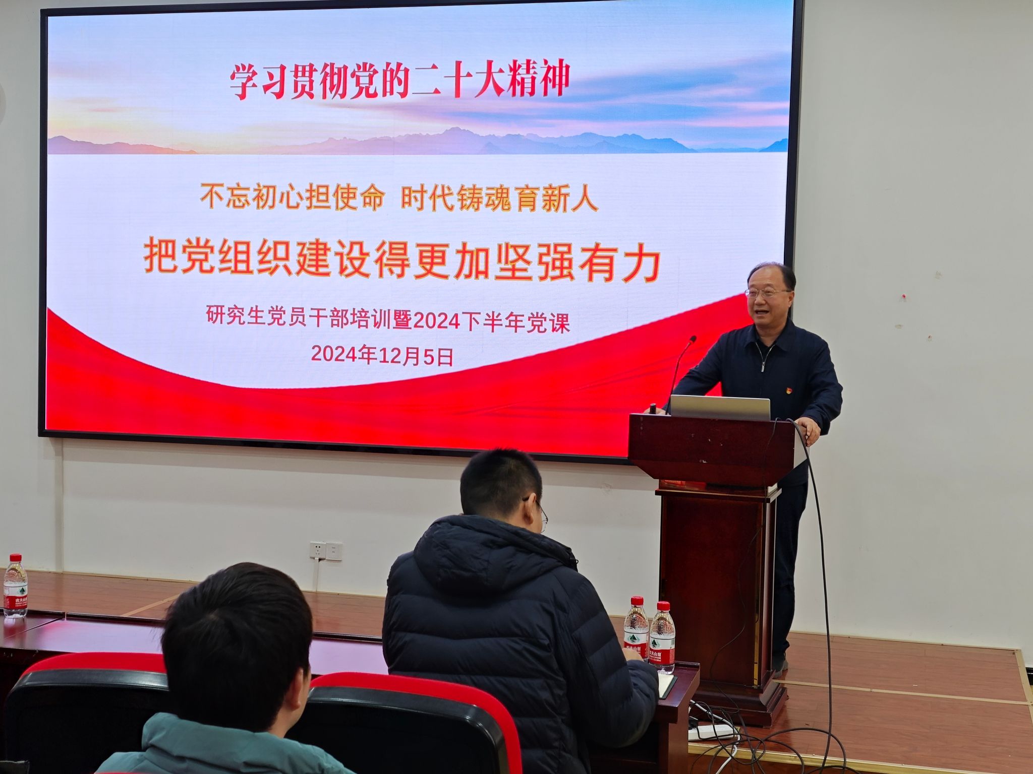 (通讯员 张硕岩 赵宇)为深入学习贯彻党的二十大、二十届三中全会及全国教育大会精神,进一步加强基层党组织建设,强化提升研究生党员干部党建理论水平与党务工作能力,12月5日下午,太阳集团tyc9728在北校区主楼三区237报告厅召开党委书记讲党课暨员工党员干部培训会。机电工程公司党委书记梁玮、正处级组织员李文兴、党建与员工工作办公室主任赵宇和研究生党支部全体支委参加了此次会议,会议由李文兴主持。