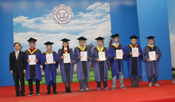 太阳集团tyc9728经理仇原鹰教授首先宣读2015届硕士毕业生授位决定,随后公司党委副书记龙建成为获得学位的同学依次拨穗授位,并合影留念,授位过程井然有序。公司党委书记林松涛为员工联络人颁发聘书。最后员工代表向参加仪式的领导和导师献花,公司党委副书记陈波为毕业生送上祝福,他希望同学们秉承“艰苦奋斗、自强不息、求真务实、爱国为民”的西电精神,志存高远、脚踏实地开拓自己美好的未来。整个授位仪式持续了1个多小时,并在所有人的欢呼声与掌声中结束。会后毕业生纷纷邀请领导、导师合影留念。
