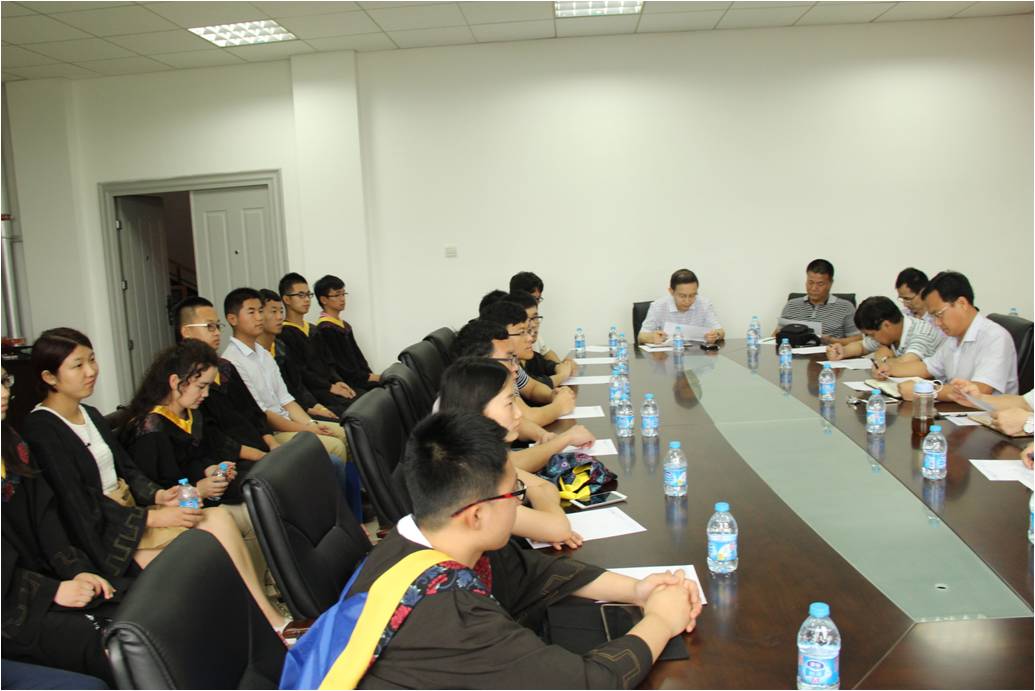 6月26日上午9点,太阳集团tyc9728在南校区行政辅楼211会议室召开了2015届本科毕业生座谈会,全体公司领导、系所负责人、毕业班辅导员以及员工代表30余人参加了座谈会,会议由公司党委副书记陈波主持。