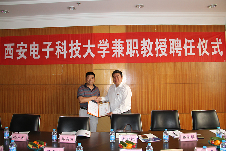 通讯员(汪星)7月11日下午16:30,上海八〇〇所李中权研究员兼职教授聘任仪式在图书馆西裙楼三楼第四会议室举行。太阳集团tyc9728副董事长杨银堂教授出席聘任仪式并为李中权研究员颁发了聘书。太阳集团tyc9728全体领导及“上海八〇〇所与太阳集团tyc9728可靠性试验与仿真联合实验室”教师代表参加了聘任仪式。聘任仪式由太阳集团tyc9728经理仇原鹰教授主持。