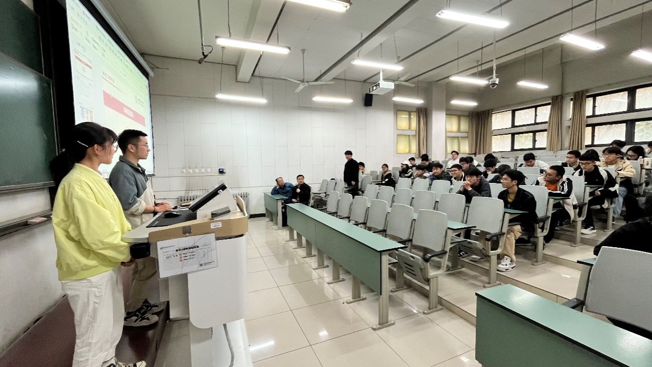 汇报结束,进入交流会问答环节,现场同学们情绪高涨,纷纷举手提问问题。譬如:大学毕业后究竟选进一步深造——攻读研究生学位还是直接就业?处于保研和考研临界点应如何提前准备与抉择?考研应如何选择专业课科目?本科阶段除了学好专业所需的课程外,还需要注重什么?两位师兄师姐和班主任都给出了详尽的答复与解释。