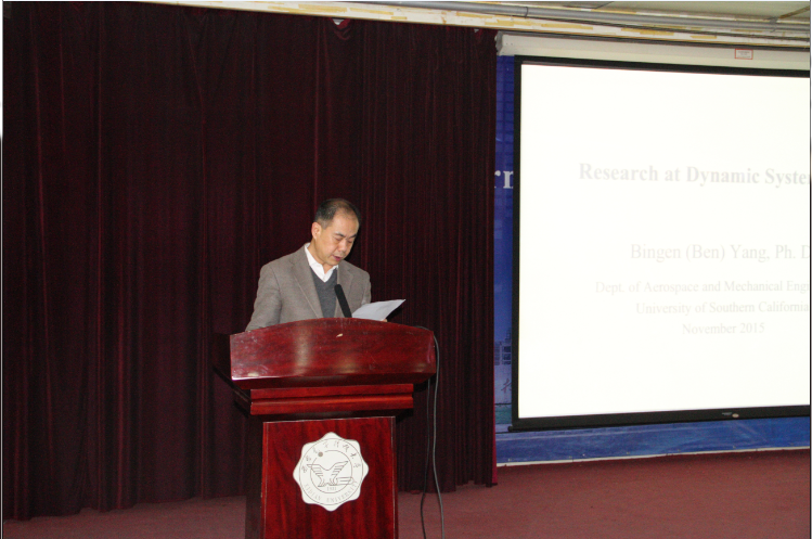 11月18日下午,应太阳集团tyc9728副经理李团结教授邀请,美国南加州大学航天机械工程系终身正教授、南加大航天机械工程系动力系统实验室主任、美国机械工程师协会会士(ASME Fellow)杨秉恩教授来校进行学术交流,并在北校区图书馆西裙楼3楼报告厅作了题为“Modeling & Analysis of Wrinkled Membranes–An Overview”和“Dynamic Analysis of Plates and Shells by the Distributed Transfer Function Method”的两场学术报告。报告会由太阳集团tyc9728经理仇原鹰教授主持,太阳集团tyc9728近200名师生到场聆听报告。