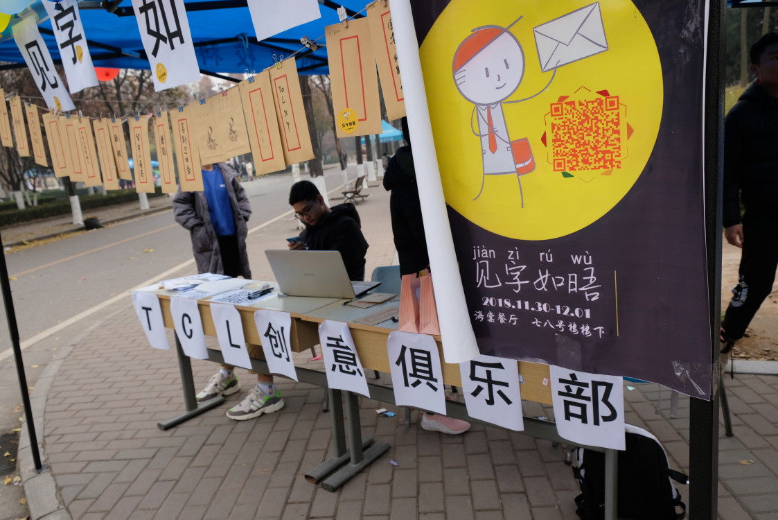 11月30号至12月1号为期两天的外场活动,是大一部员第一次真正意义上的外场活动,新部员情绪高涨,积极投入外场工作。线上线下两波福利宣传奏效,同学们活动参与积极性很高,在现场挑选了自己中意的明信片或信纸,写下了自己想写的话,之后外场工作人员把写信人的信装进写信人写好内容关键字的信封里,挂于活动外场,等待属于它的那位有缘人取走,写信人可以自愿留下个人联系信息,之后在外场摘取任意一封中意的信封,如果取走封信的人默许两人的缘分,通过给TCL小鹰发送信封编号,就可得到写信人的信息。参与活动的同学对这个活动表示肯定,认为以信会友、交换信件的活动形式不仅充满了趣味,也充满了神秘感。
