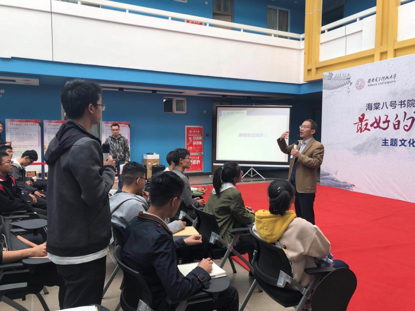 李老师对老员工如何实现个人发展提出了自己独到的见解: “青年兴则国家兴,青年强则国家强”,李老师希望同学们在西电学习的四年里能够积极参加锻炼、提高自我素质、增强专业技能,做到自信自强、勇于发声、勤于实践、应需求学,不断提高个人综合素质,时刻肩负使命感,成为祖国振兴的中坚力量。 他建议同学们应对自己的大学学习和生活进行细密的规划和有效的自我管理,充分利用公司提供的多种资源,把理论知识应用到实践中去,在实践中发现问题并提出解决方法,在实践中见真知。