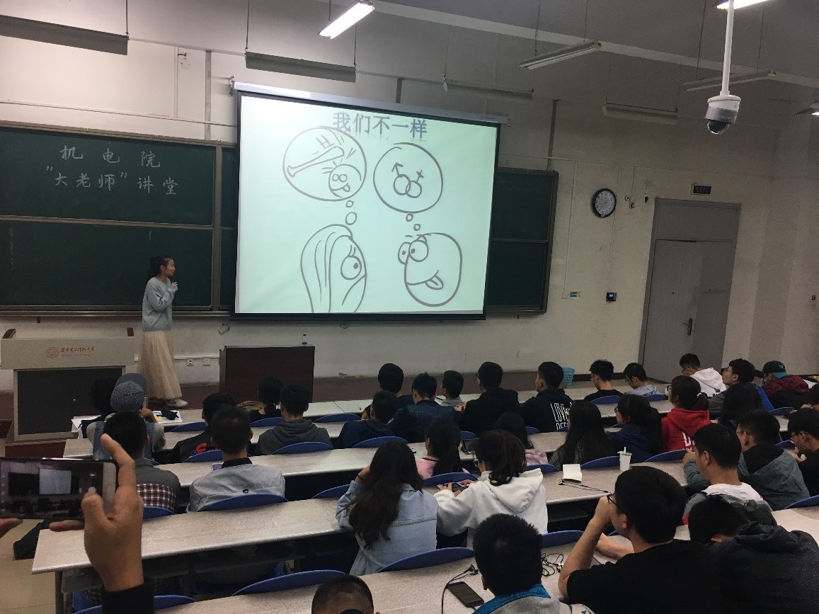 1704012班学习委员杨佳欣同学以幽默风趣的语言,从科学的角度解释了男女生在生活学习和处事方面的差异,希望同学们能正确对待这些差异,彼此理解,互相帮助。让同学们对异性有了一个全新的认识,在以后的相处中能够学会换位思考,和睦相处。