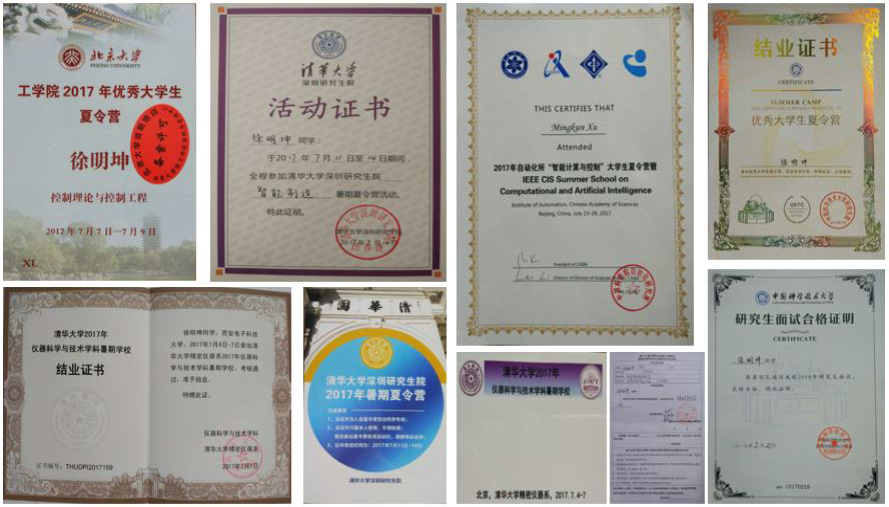 在大学期间,徐明坤同学从大二时开始接触各种竞赛,那时校内星火杯电子设计竞赛一度流行,他多次参加并连续获得此类竞赛奖五六次。在大二下学期,在保持专业成绩水平的前提下,他在数学建模比赛和 TI 杯、电赛之间选择迟疑不决。他一度很喜欢理论研究,也很喜欢硬件操作,为了提升数学理论建模能力和思维水平,他选择了数学建模竞赛。虽然在国赛和美赛中取得了不错的成绩,但过程是坎坷和曲折的。比如在美赛中,利用 WLAN多信道TCP 流的传输来模拟机场检测点排队随机动态过程的模型出了问题,陷入一筹莫展的瓶颈,当队友想放弃时,他说,“我们还没坚持到最后,不能放弃”。这句话鼓舞着队友又振奋了起来,熬了四天三夜后终于出现了转机,在最后一刻提交了论文,取得了国际一等奖的成绩。
