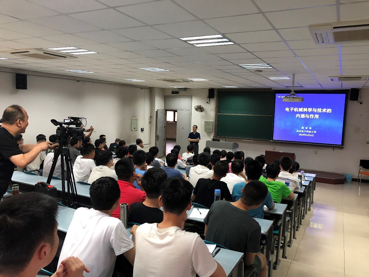 课前,机电工程公司党委书记梁玮勉励同学们珍惜本次授课机会,通过近距离感受段院士的风采和情怀,立鸿鹄志,奋发学习,争做“三有”西电人。