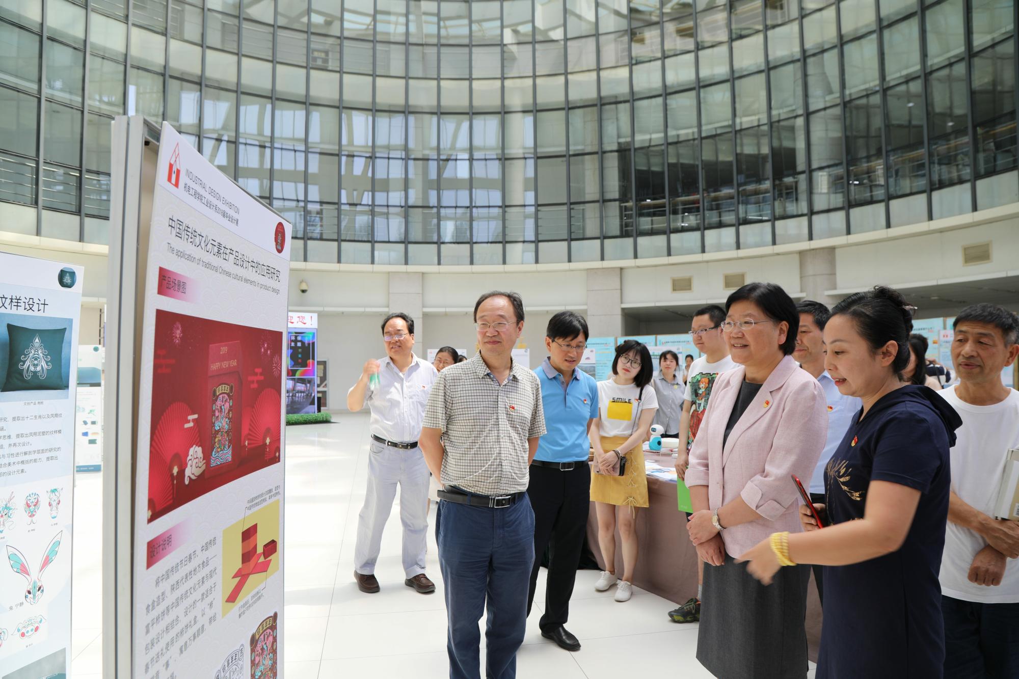 参观过程中,郑晓静详细了解了工业设计系的党建工作、专业建设、团队队伍、人才培养、课程实践等相关情况,并逐一参观了所展出的毕业设计作品展板、作品画册、作品实物和模型,现场听取了工业设计系师生代表的细致介绍。