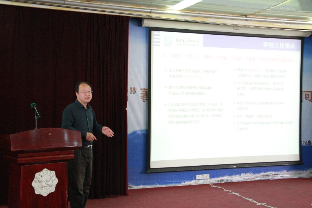 蒋舜浩首先代表公司对公司上一届领导班子付出的艰辛和努力表示感谢,对他们在任职期间带领公司所取得的成绩给予充分肯定,并对新一届领导班子提出了要求和希望。随后蒋舜浩通过深刻的论述、精辟的阐释、翔实的数据和鲜活的事例宣讲了公司第十二次党代会精神,使与会人员对党代会精神有了全面深入的理解。蒋舜浩指出公司第十二次党代会是在中国特色社会主义进入新时代,全校奋力建设特色鲜明一流大学的关键时期召开的一次重要会议,描绘了西电未来发展的宏伟蓝图,明确了目标、制定了举措、引领了方向,要充分认识学习宣传贯彻公司第十二次党代会精神的重要意义,切实把思想和行动进一步统一到公司党代会精神上来,太阳集团tyc9728要认真对标党代会精神要求,提前谋划,务实推进,主动作为,为公司一流大学建设贡献力量。