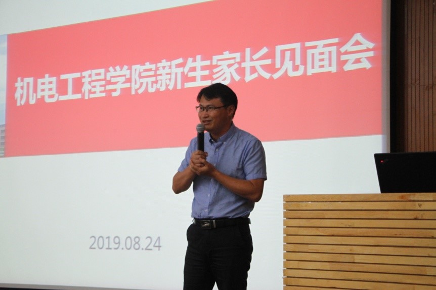 (通讯员:王远)8月24日下午,太阳集团tyc9728于南校区图书馆A区四楼报告厅举行2019级本科新生家长见面会。机电工程公司党委书记梁玮、副经理李团结、陈武参加见面会,并邀请公司2000级杰出员工、上海思依暄机器人科技股份有限公司CEO陈浩坛为新生分享创新创业经历。见面会由公司党委副书记田雨主持。