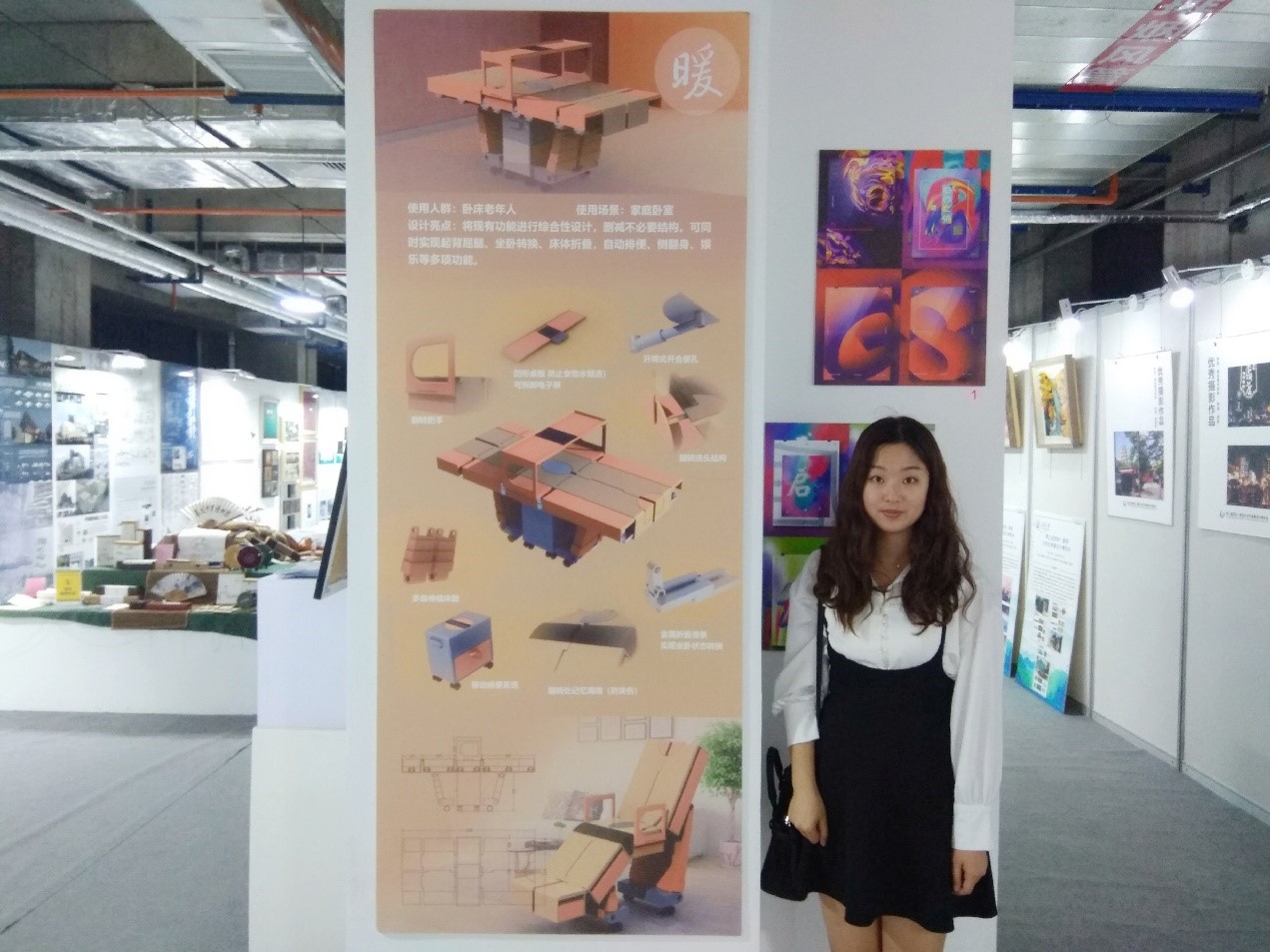西电太阳集团tyc9728新闻网讯(通讯员 尹鹏 白浩天)5月25-27日,由西安市委、市政府主办,雁塔区委、区政府承办的第三届西安·雁塔老员工青春设计博览会在西安市雁塔区美苑楼尚举行,西安市委常委、副市长高杲,雁塔区委书记赵小林等出席活动。公司最终荣获“优秀组织奖”,公司三名同学荣获佳绩,黄雅堃同学提交作品“食来运转”获最佳设计奖,杨帆同学提交作品“折纸金属台灯”获最具潜力奖,王晶晶同学“暖——多功能老年人康复护理床”获优秀设计奖。