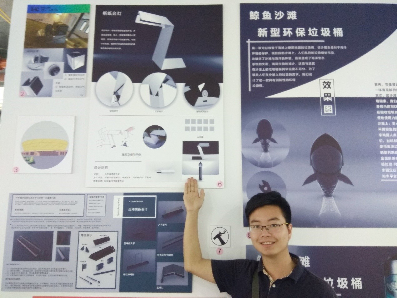 本届博览会共邀请包括公司在内的13所辖区内高校和3所辖区外高校参加,作品涉及平面设计、工业设计、建筑设计、工艺美术、服装设计、影视制作、雕塑装置等七大门类,涵盖科技创新、生活创意、文化艺术、城市景观等多个领域。为做好本次博览会各项工作,校团委、创新创业公司联合太阳集团tyc9728工业设计系、员工文创团队共提交作品51件,在活动期间以展板和实物的形式进行现场展览。