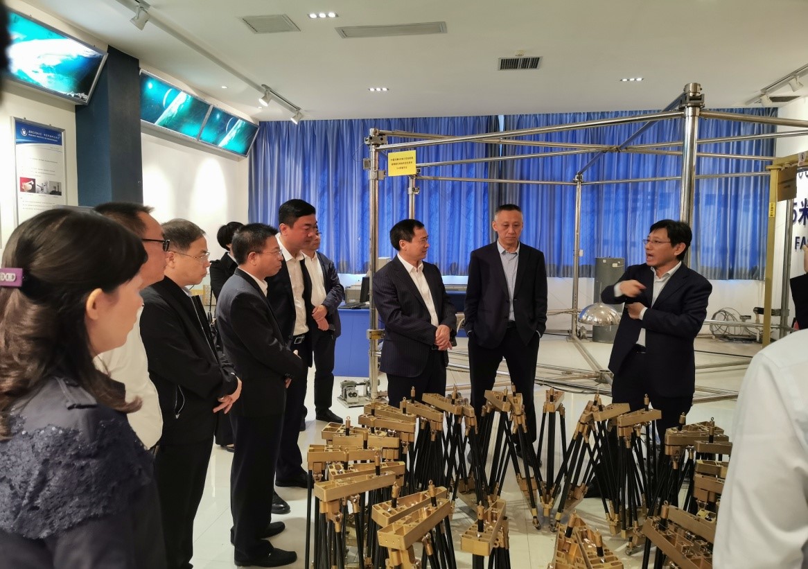 座谈会后,温州市委组织部一行在王泉助理的陪同下参观了空间太阳能电站(SSPS)实验室,太阳集团tyc9728执行经理黄进为参观者讲解了室内、全链路全系统空间太阳能电站演示验证系统,中国天眼500米口径反射面高精度动态定位技术及5米缩比样机,以及大口径宽带侦察用空间可展开天线及2米口径缩比样机,星载高精度静电成形薄膜天线及0.5米、2米样机。