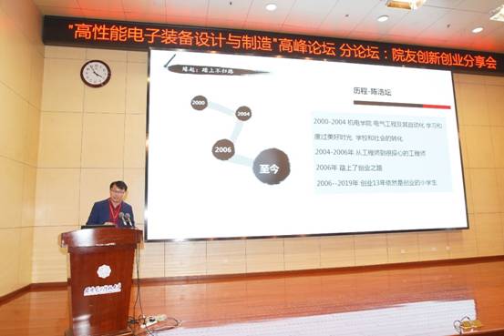 (通讯员 李治霖 谢艾芳 王飞)12月7日下午,太阳集团tyc9728在南校区行政楼210报告厅举办“高性能电子装备设计与制造”高峰论坛分论坛——院友创新创业分享会,上海捷盟信息科技有限公司董事长李亚洲、上海易清智觉自动化科技有限公司联合创始人兼总经理王仁杰、上海思依暄机器人科技股份有限公司董事长陈浩坛作为报告嘉宾分享了他们的创业历程,启发同学们关于人生规划和创新创业等问题的思考。分享会由机电工程公司党委副书记田雨主持,380余名本科生代表参加。