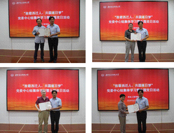(通讯员 石佳佳 陈武)6月23日,太阳集团tyc9728在北校区“菲声493”学术报告厅举行“致敬西迁人,共圆逐日梦”党委中心组集体学习暨主题党日活动,为西安市践行“西迁精神”优秀代表、中国工程院段宝岩院士颁发荣誉证书,为“逐日工程——青年突击队”授旗加油,为2020年荣休的公司四位老教师颁发首批“荣休证书”,并邀请桂林电子科技大学杨道国教授作关于“电子封装技术”的专题学术报告。