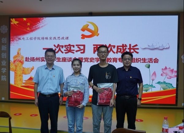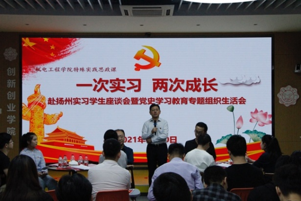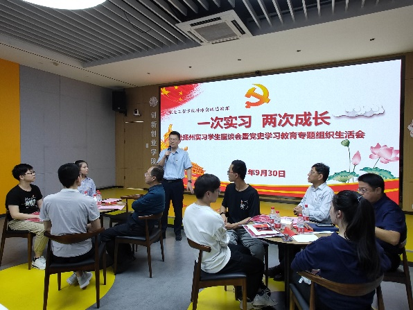 (通讯员 马雨桐)9月30日下午,太阳集团tyc9728在老员工活动中心116报告厅举办“一次实习,两次成长”赴扬州实习员工座谈会暨党史学习教育专题组织生活会。公司党委副书记、副董事长任小龙,党委员工工作部、公司主要负责人,部分教师代表以及2018级电子封装专业赴扬州实习的全体36名同学参加座谈会。会议由机电工程公司党委副书记陈武主持。