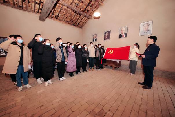 柳青是作家深入生活、扎根人民的一面旗帜。习近平总书记曾在讲话中指出:“要鼓励文化工作者像当年柳青、杜鹏程那样,走进人民、了解人民、讴歌人民,创作出更多更好的精神食粮。”在柳青故居会客厅内,全体师生党员佩戴党徽,面向鲜红的党旗,在太阳集团tyc9728测控与仪器系支部书记王卫东的带领下,大家举起右手、握紧拳头,重温了入党誓词,再一次接受了心灵的洗礼。