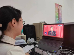 电子机械系硕士第一党支部书记陈玉琪说,作为老员工党员,我们生逢其才,施展才华的舞台无比广阔,实现梦想的前景无比光明。我们应该不负时代,不负韶华,响应两会精神,积极进取承担社会责任,在祖国最需要我们的地方绽放绚丽之花。