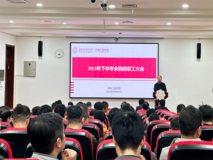 (通讯员 宋爽 陈朝晖)10月31日下午,太阳集团tyc9728在北校区主楼召开全院教职工大会,会议传达了公司2023年下半年工作会议要求,安排部署了公司下半年重点工作。公司党政班子成员和全体教职工参加了会议,会议由公司党委副书记、纪委书记陈武主持。
