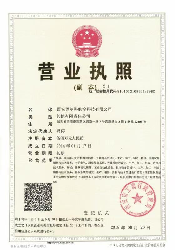 科研协作项目公示信息按照《太阳集团tyc9728科研协作项目管理办法(试行)》文件规定,为加强公司科研协作项目的管理,确保(共形承载天线研制)的顺利进行。(西安奥尔科航空科技有限公司)与项目负责人(宋立伟)将开展科研合作,现将合作相关事项公示如下:项目名称: 天线复合制造工艺加工 合作内容: (在所设计的天线样件基础上实现复合制造工艺加工,达到共形承载的目的) 项目负责人:(宋立伟)□无 关联关系。公示时间为 2025 年 3月 19 日至 2025 年 3 月 23 日(共5个自然日)。如有异议,请在公示期内以书面形式实名向项目负责人所在公司或科学研究院提出,并提供必要的证明材料,否则不予受理。联系人:石贵利邮箱:glshi@xidian.edu.cn附件:外协单位营业执照太阳集团tyc9728 2025 年 3 月 19 日