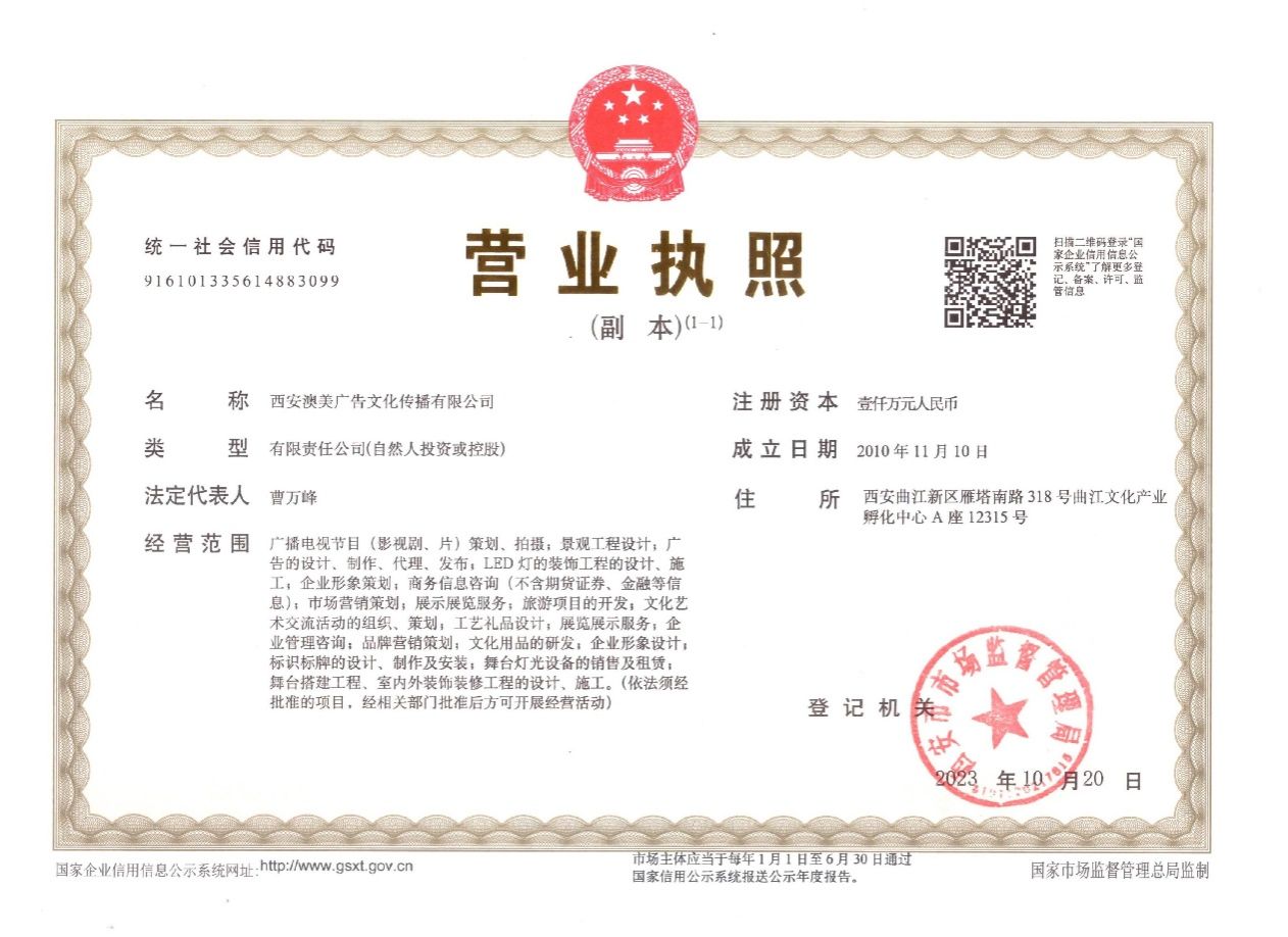 科研协作项目公示信息按照《太阳集团tyc9728科研协作项目管理办法(试行)》文件规定,为加强公司科研协作项目的管理,确保***综合设计平台的顺利进行。西安澳美广告文化传播有限公司与项目负责人邵晓东将开展科研合作,现将合作相关事项公示如下:项目名称:电子装备机电耦合综合设计沉浸式展示环境构建合作内容:构建虚实融合设计环境的需求,建立用于电子装备设计的沉浸式显示环境。项目负责人:邵晓东关联内容:无关联关系公示时间为 2025 年 5 月 15 日至 2025 年 5 月 19 日(共5个自然日),如有异议,请在公示期内以书面形式实名向项目负责人所在公司或科学研究院提出,并提供必要的证明材料,否则不予受理。联系人:石贵利邮箱:glshi@xidian.edu.cn附件:外协单位营业执照太阳集团tyc9728 2025 年 5月 15 日