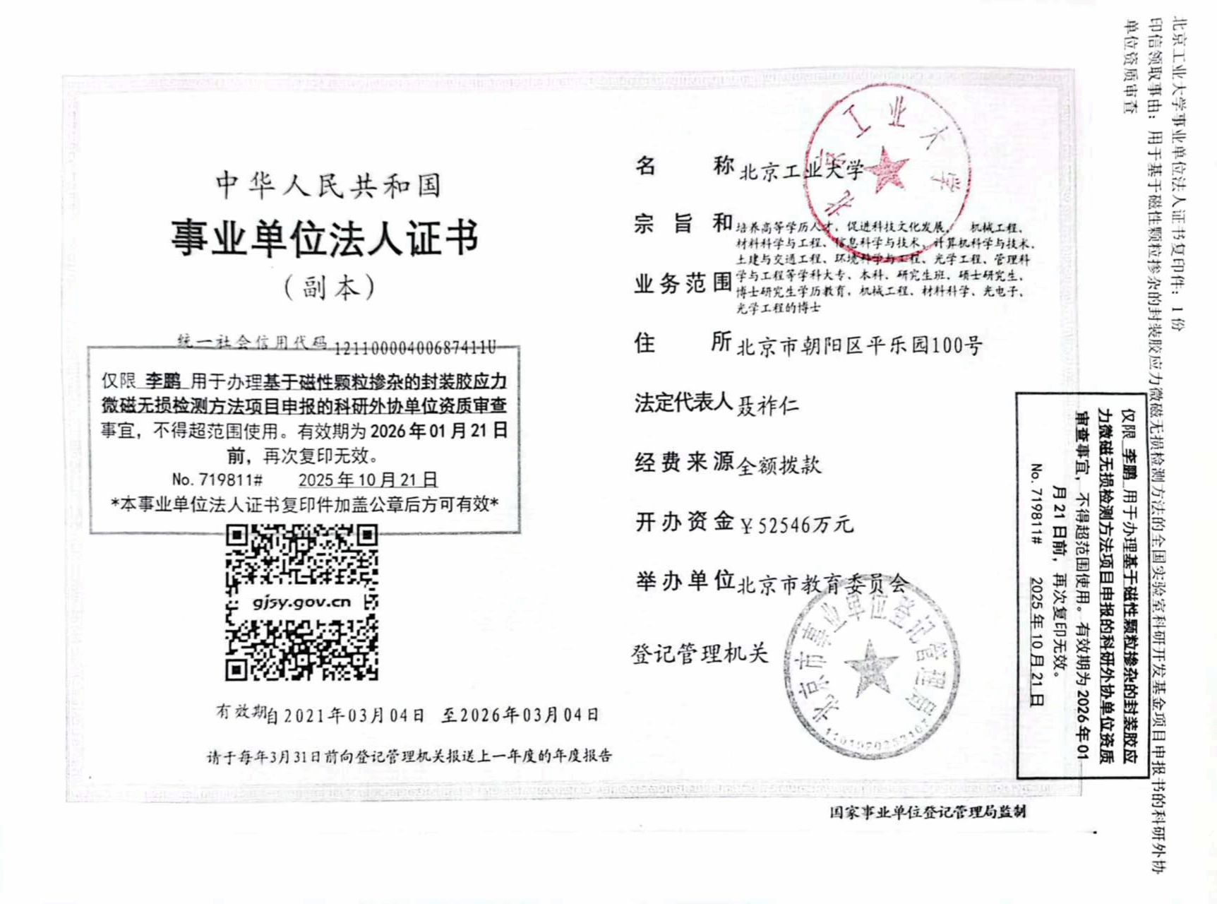 项目名称:基于磁性颗粒掺杂的封装胶应力微磁无损检测方法