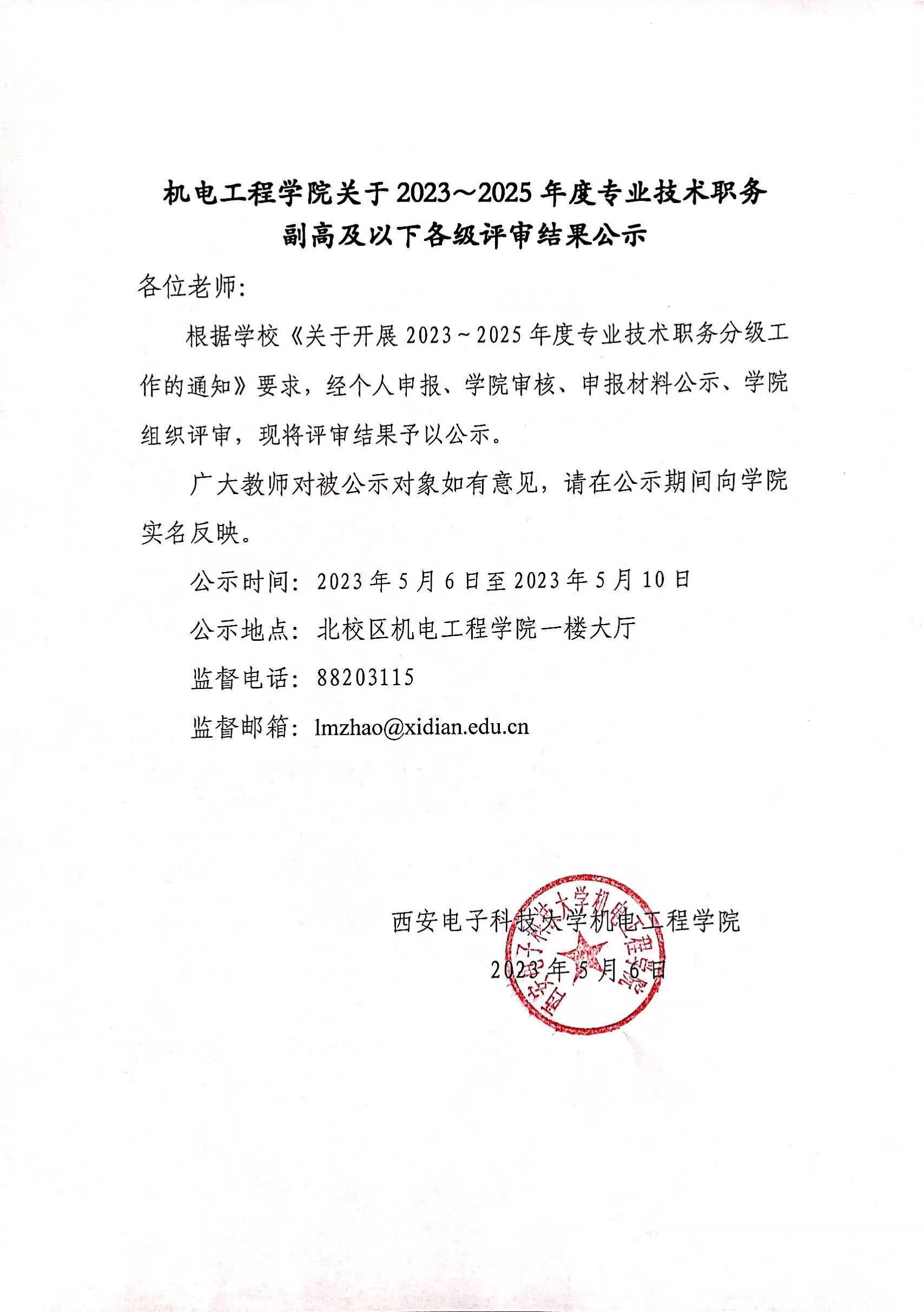 太阳集团tyc9728关于2023~2025年度专业技术职务副高及以下各级评审结果公示(公示期已过)