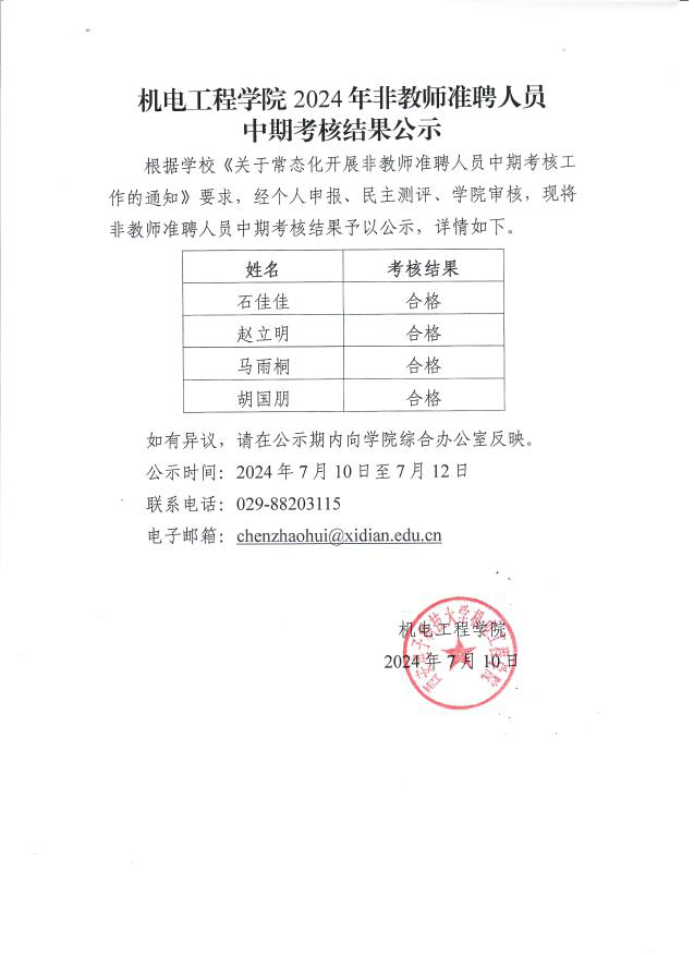 太阳集团tyc97282024年非教师准聘人员中期考核结果公示