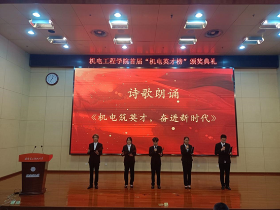 颁奖典礼在诗朗诵《机电筑英才 奋进新时代》中拉开帷幕,奋进的节奏展示了机电人蓬勃筑梦的青春。
