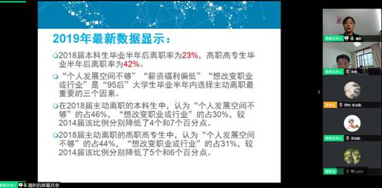 王瑾及其同事何川向同学们介绍了均胜集团的业务范围、工业产品以及生产工艺等。同学们跟随着摄像头参观了办公环境与产品展柜,身临其境地领略了这家企业的魅力所在。同时,均胜集团也向参会的员工发出邀请,期待同学们的加入。