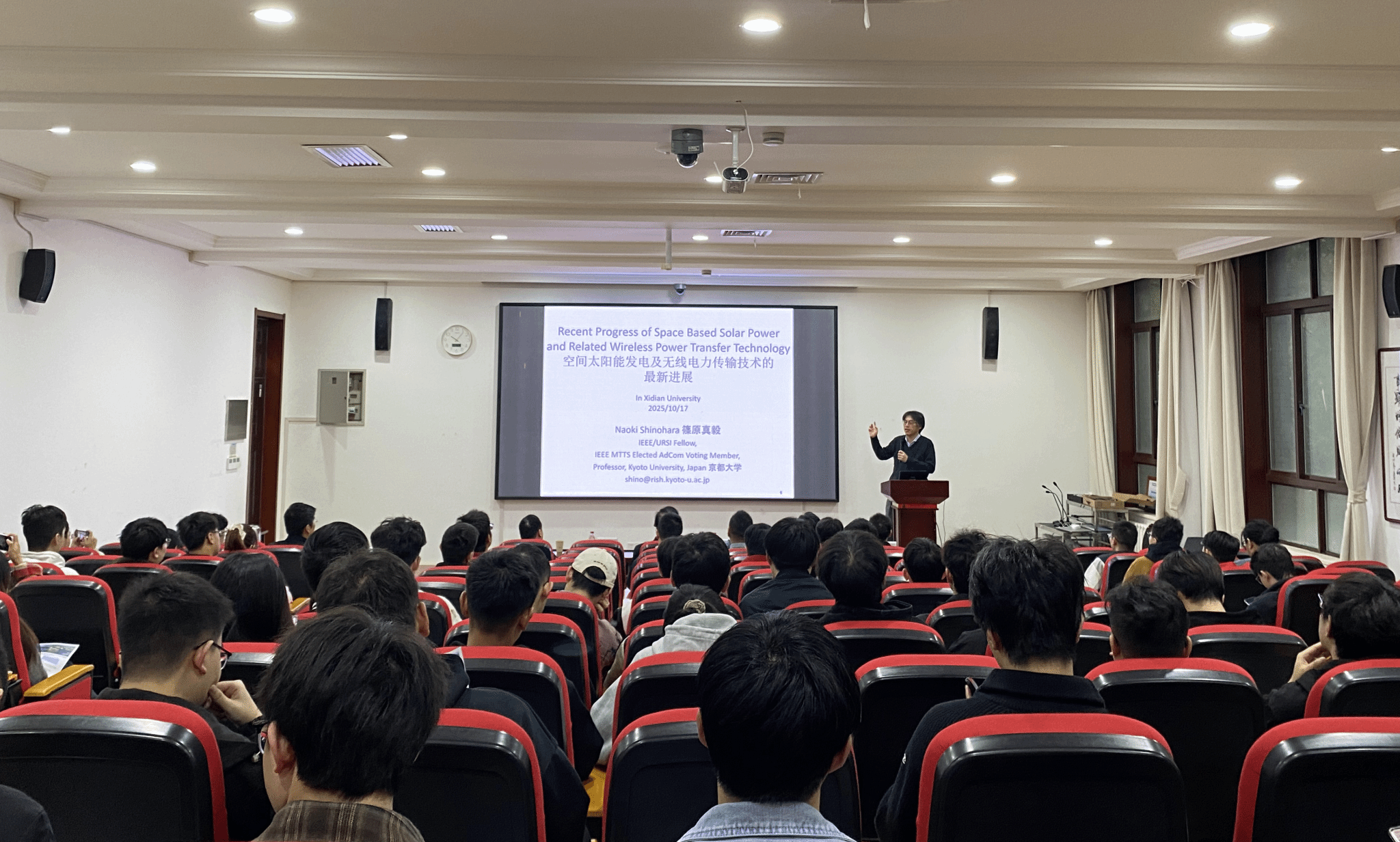 (通讯员 崔家瑞、张帅、石贵利)2025年10月17日,应太阳集团tyc9728电子装备机电耦合实验室邀请,日本京都大学知名学者Naoki Shinohara教授在北校区主楼III-237报告厅作题为《Space Solar Power Station and Microwave Wireless Power Transmission technologies》的学术报告。中国工程院院士段宝岩教授,校人才办主任李龙教授,国家级青年人才杨波教授,以及120余名师生参加报告会。会议由李鹏教授主持。