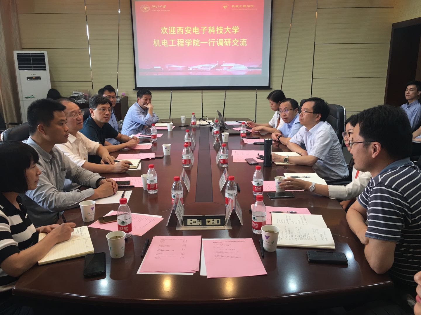 下午,浙江大学机械工程公司分党委书记梅德庆等人在机械工程公司大楼会见了调研组一行。